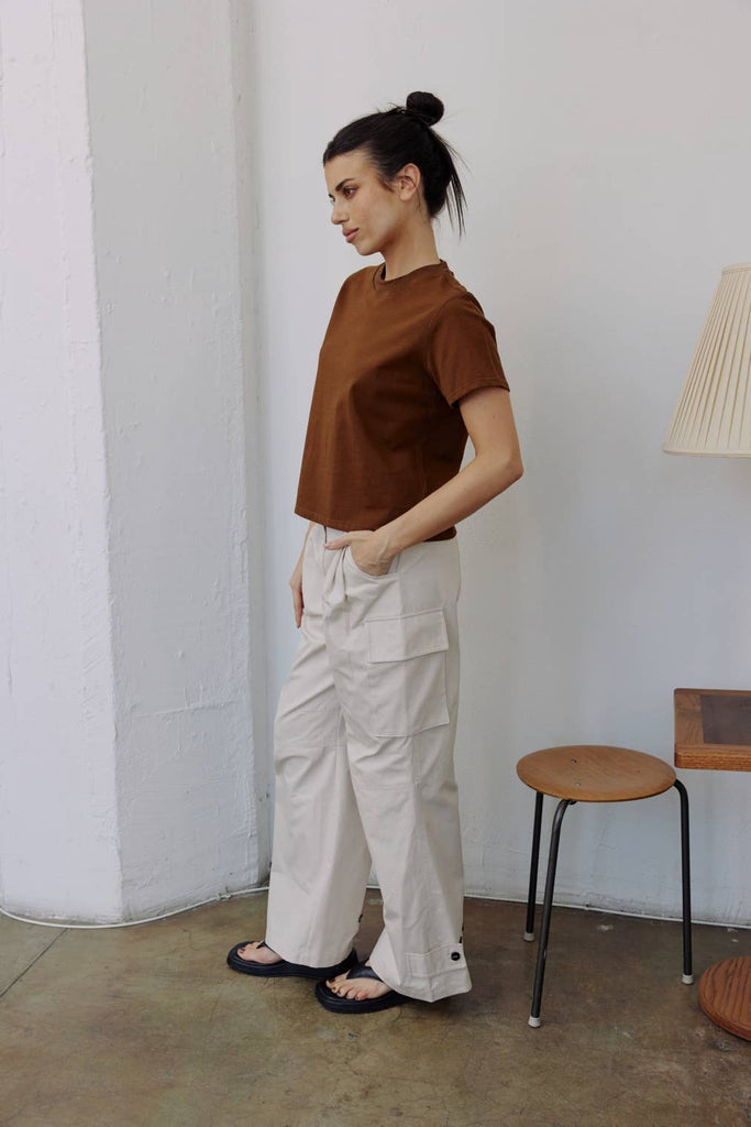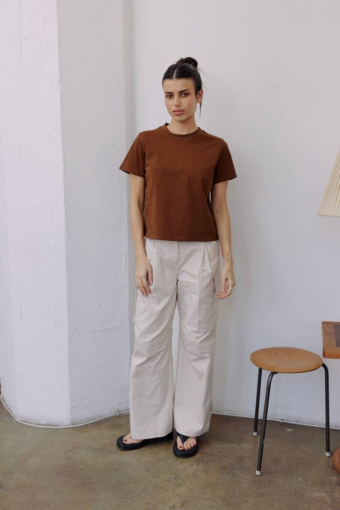 The Lanie Top is our fresh approach to the classic tee. Its crafted from a heavy-weight cotton jersey and is detailed with a reversed overlock stitch for durability.